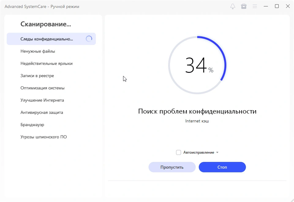 Представляю вашему вниманию Advanced SystemCare Pro 19, это довольно известный инструмент, для оптимизации операционной системы Windows. В одной программе собрано множество полезных инструментов, которые позволят очистить, и ускорить систему. Приложение умеет искать неверные записи в реестре и удалять их. Точно так же оно может выявлять мусорные файлы на дисках, и тоже их удалять. Кроме этого, имеется возможность искать неверные ярлыки с последующим удалением их. Ещё есть опция, которая позволяет стирать ваши следы конфиденциальности.